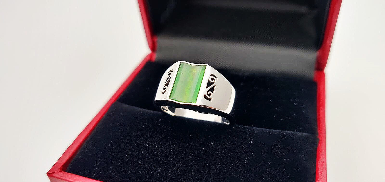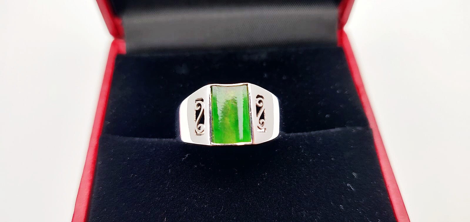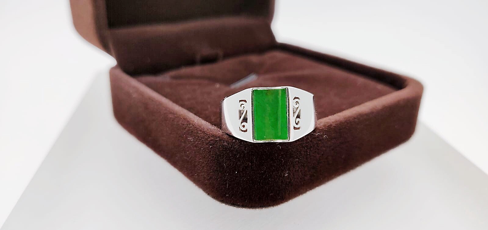 Bague Jadéite Verte - Or Blanc Minimaliste et Design Classique
