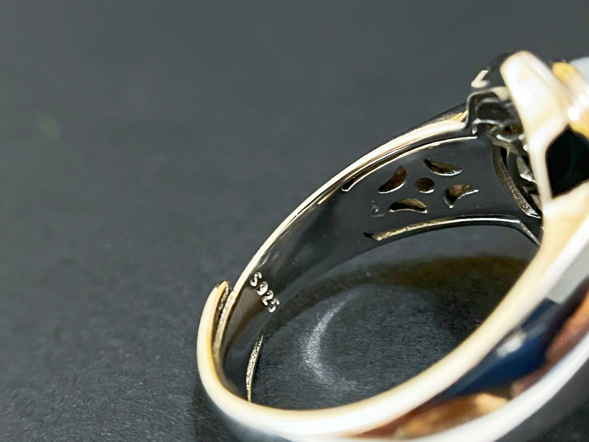 Ajoutez une touche de sophistication audacieuse à votre collection de bijoux avec cette bague magnifiquement conçue dotée d'un anneau épais et robuste.