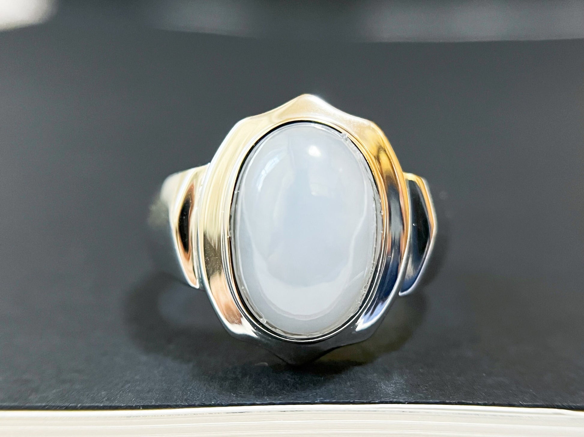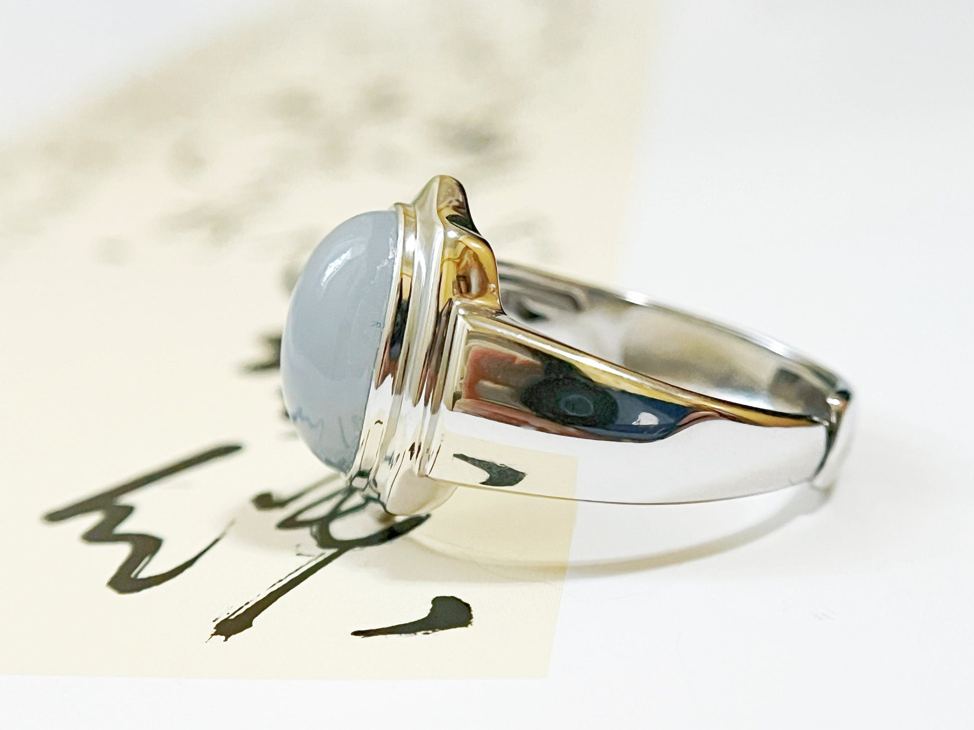 Découvrez la beauté inégalée de cette exquise bague en jadéite fabriquée à la main avec les meilleurs matériaux ! Cette superbe pièce est composée de jade jadéite glacé du Myanmar de type A 100 % naturel, non traité et non teint, qui présente une texture glacée lisse et fine envoûtante offerte par Mère Nature elle-même. La texture fine et l'éclat vitreux de la jadéite lui confèrent un éclat séduisant qui ne manquera pas d'attirer l'attention de tous.