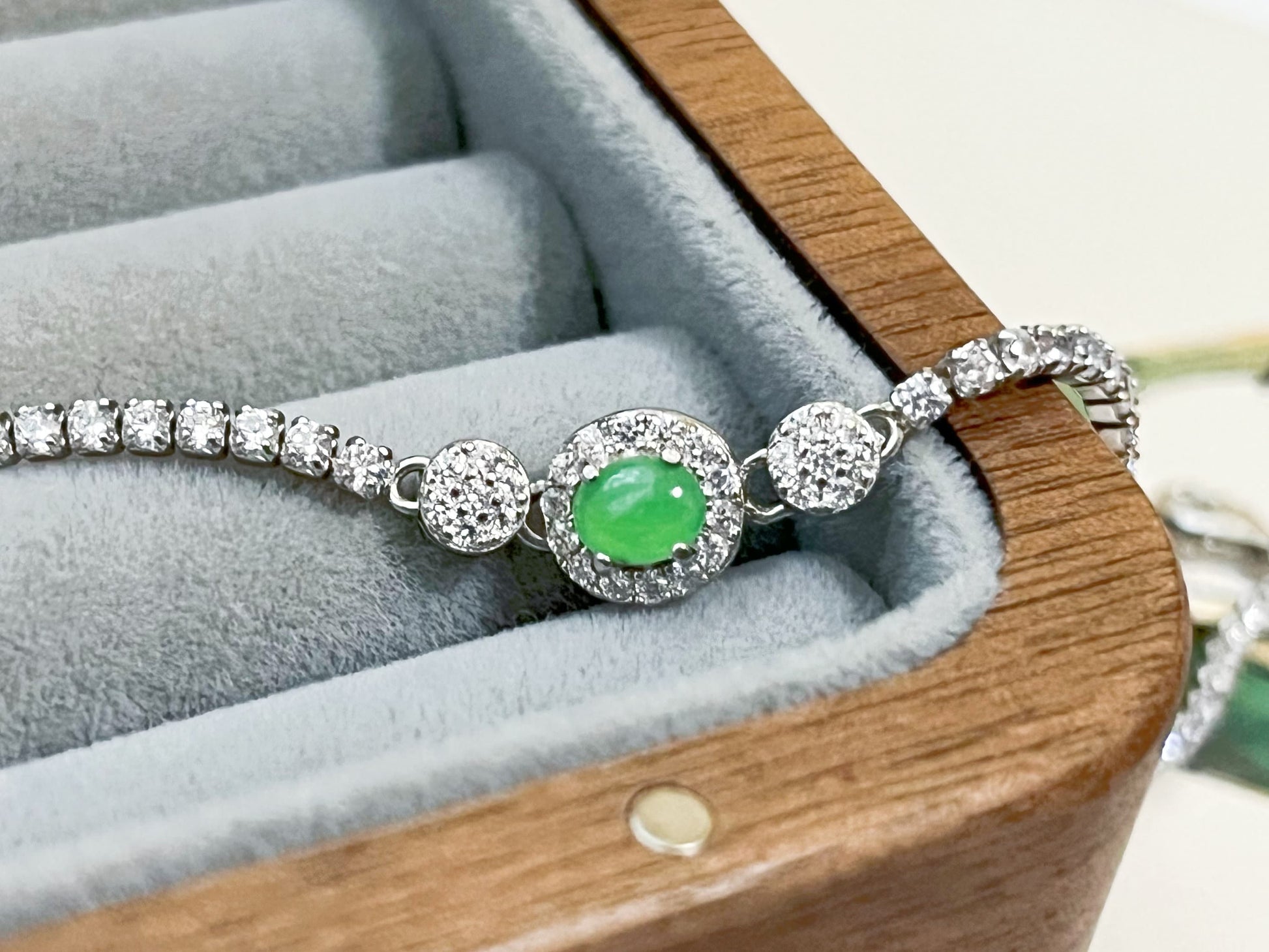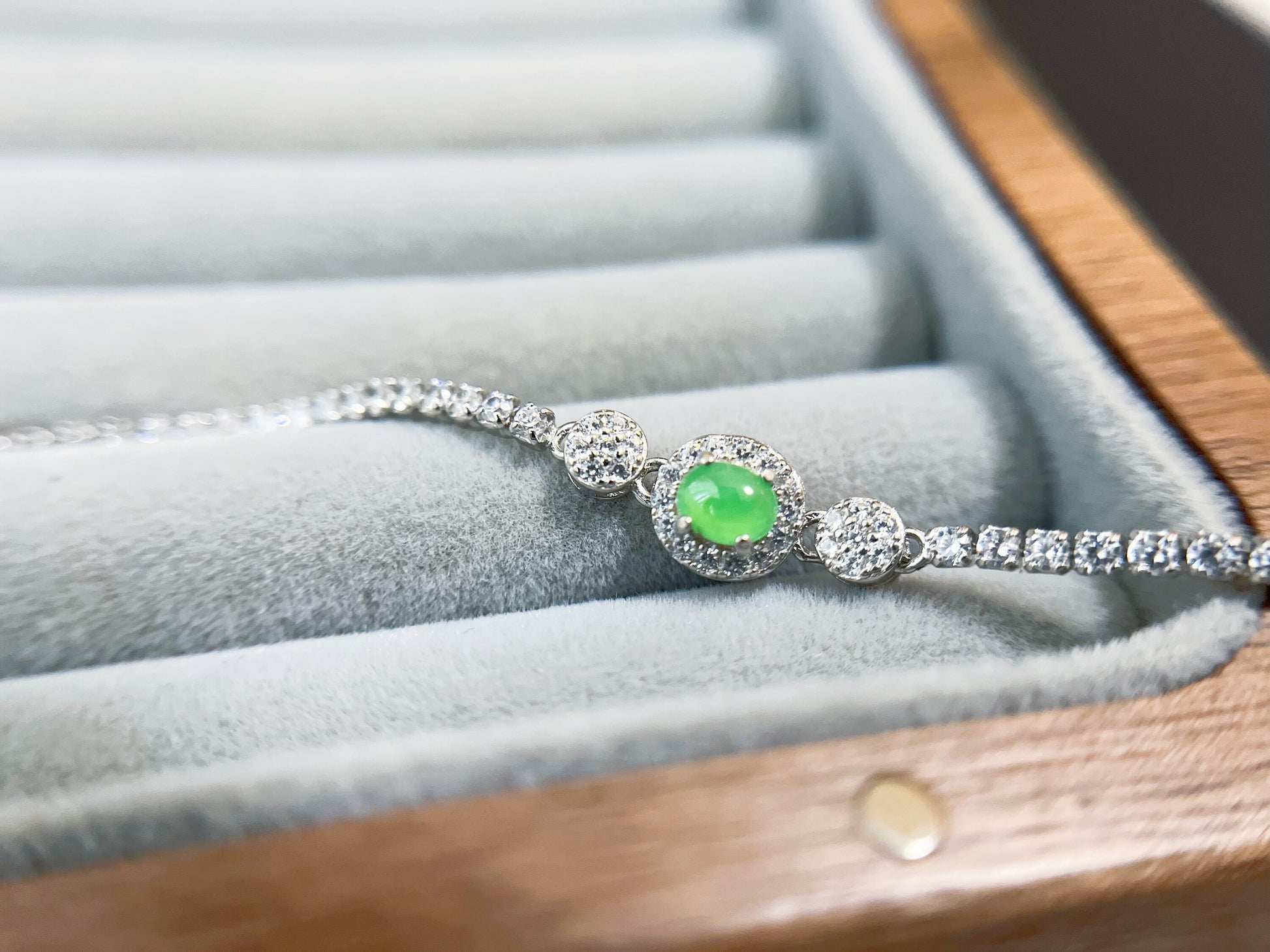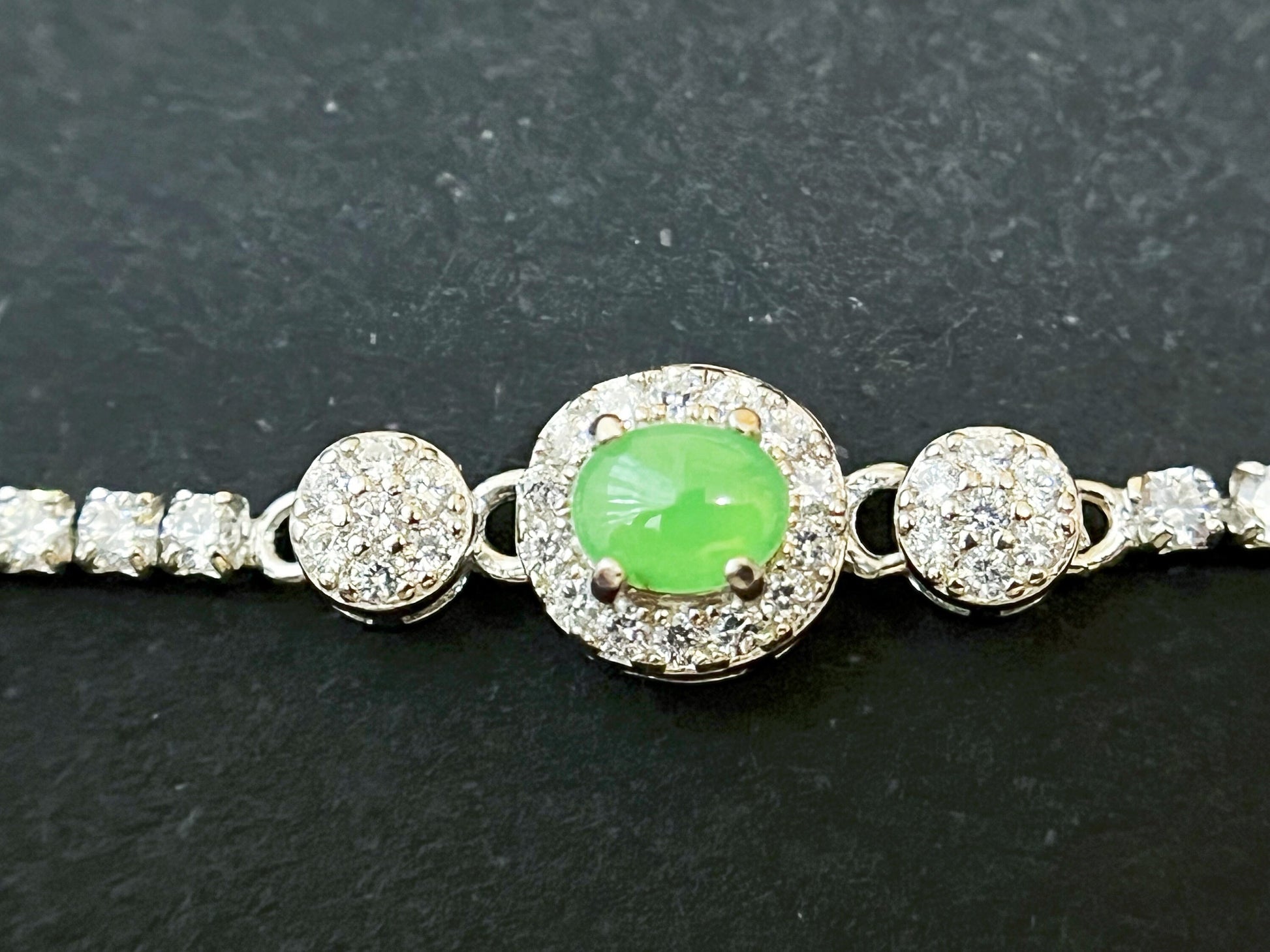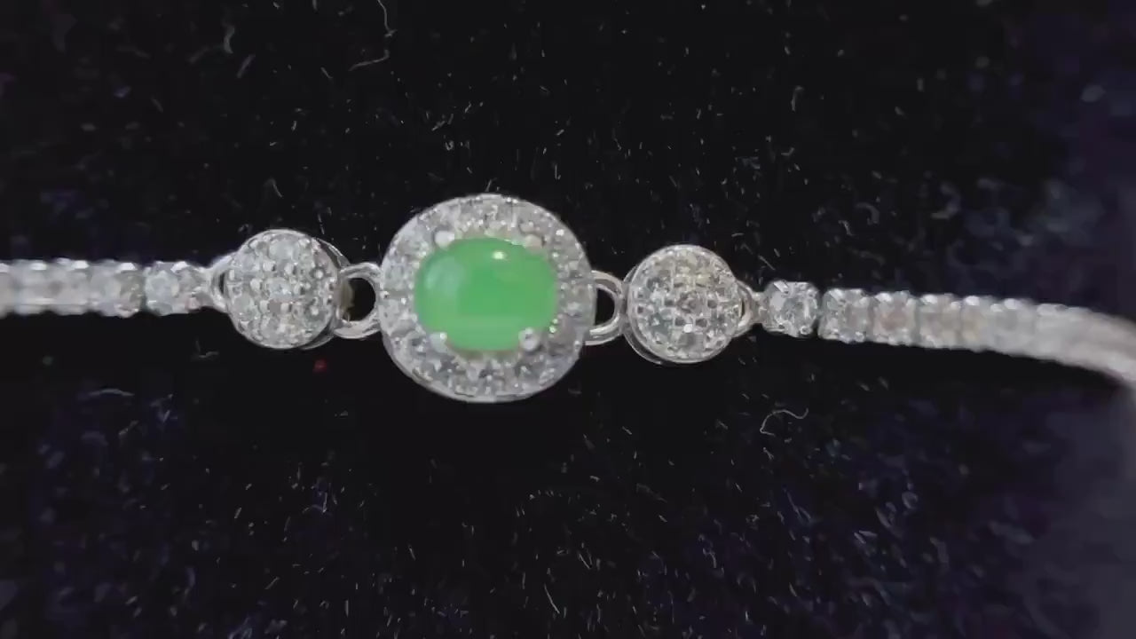 Bracelet Jadéite Vert Glacé - Argent Sterling avec Accents Zircon