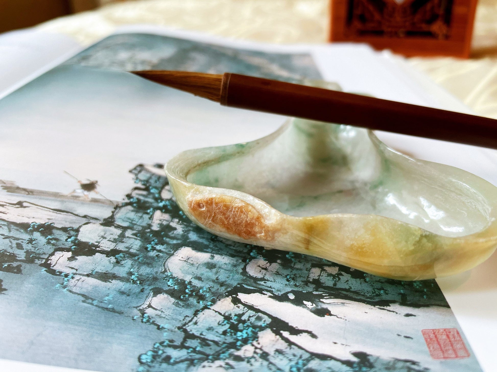 Plaque d'encre en jadéite pour la calligraphie chinoise