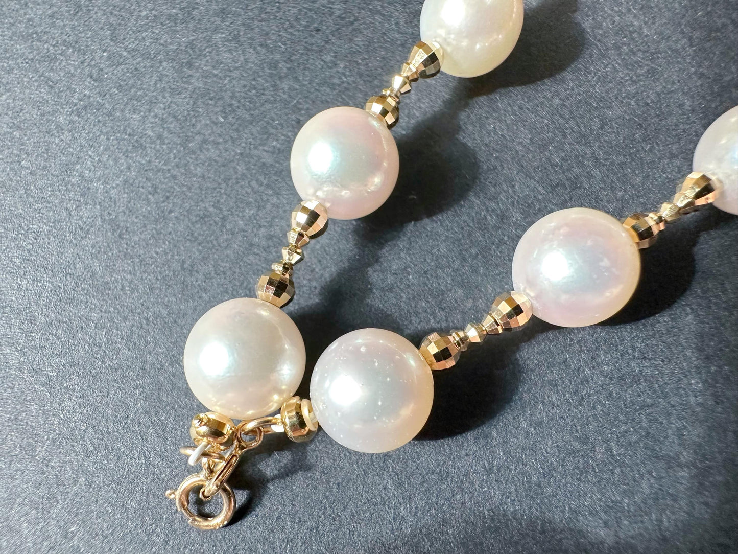 Akoya Pearl Necklace - White Pearl Strand with 18K Gold Beads & Double Clasp