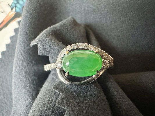 Imperial Green Jade Ring – Natural Jadeite Gemstone in 18K White Gold with Diamonds
