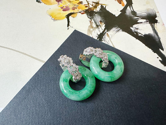 Jade Donut Hoop Earrings – Natural Vivid Green Jadeite in 18K White Gold with Diamond Accents