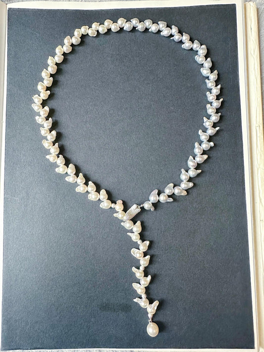 Japan Akoya Pearl Necklace – Adjustable Sterling Silver Clasp | Elegant Wheat Ear Design