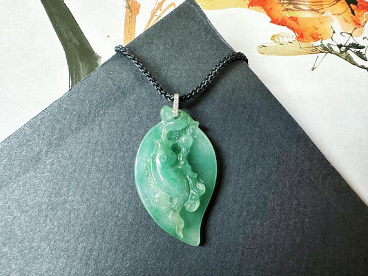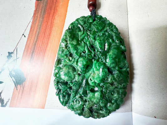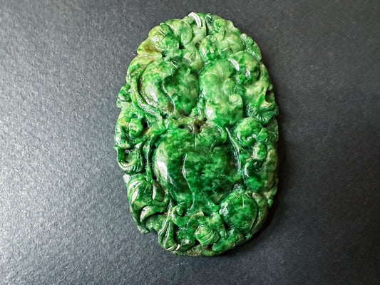 Green Jade Pendant - Artisan Carved Intense Green Jade Jewelry With Lucky Symbols