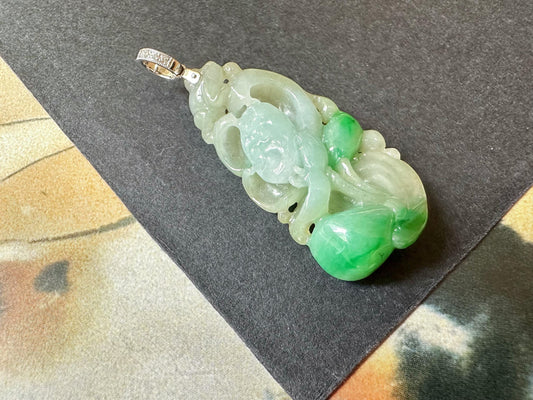 Green Jade Pendant - Artisan Carved Type A Jadeite With Peach Symbol Jewelry